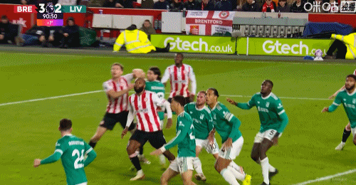 第5分钟,手榴弹战术,瓦塔拉半凌空倒钩破门,布伦特福德1-0利物浦